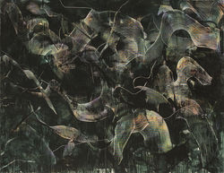 ![]() DEPRESJA / tech.mieszana / płótno /125 x 150 cm / 2019 | ![]() MIGAWKI / akryl, płótno / 150 x 120 cm / 2018 | ![]() W JAMIE / olej, płótno / 170 x 360 cm / 2019 |